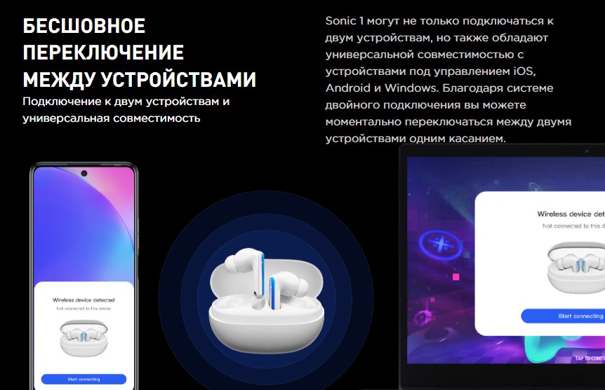 | Особенности, дополнительно | время воспроизведения аудио с учетом зарядного кейса до 50 ч,микрофон с шумоподавлением, голосовой помощник, подключение к двум устройствам |
