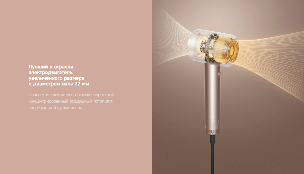 Dreame Gusto High-speed оснащён мотором со скоростью до 110 000 об/мин и мощностью 2000 Вт. Высокая производительность обеспечивает быструю сушку волос без лишних затрат времени.