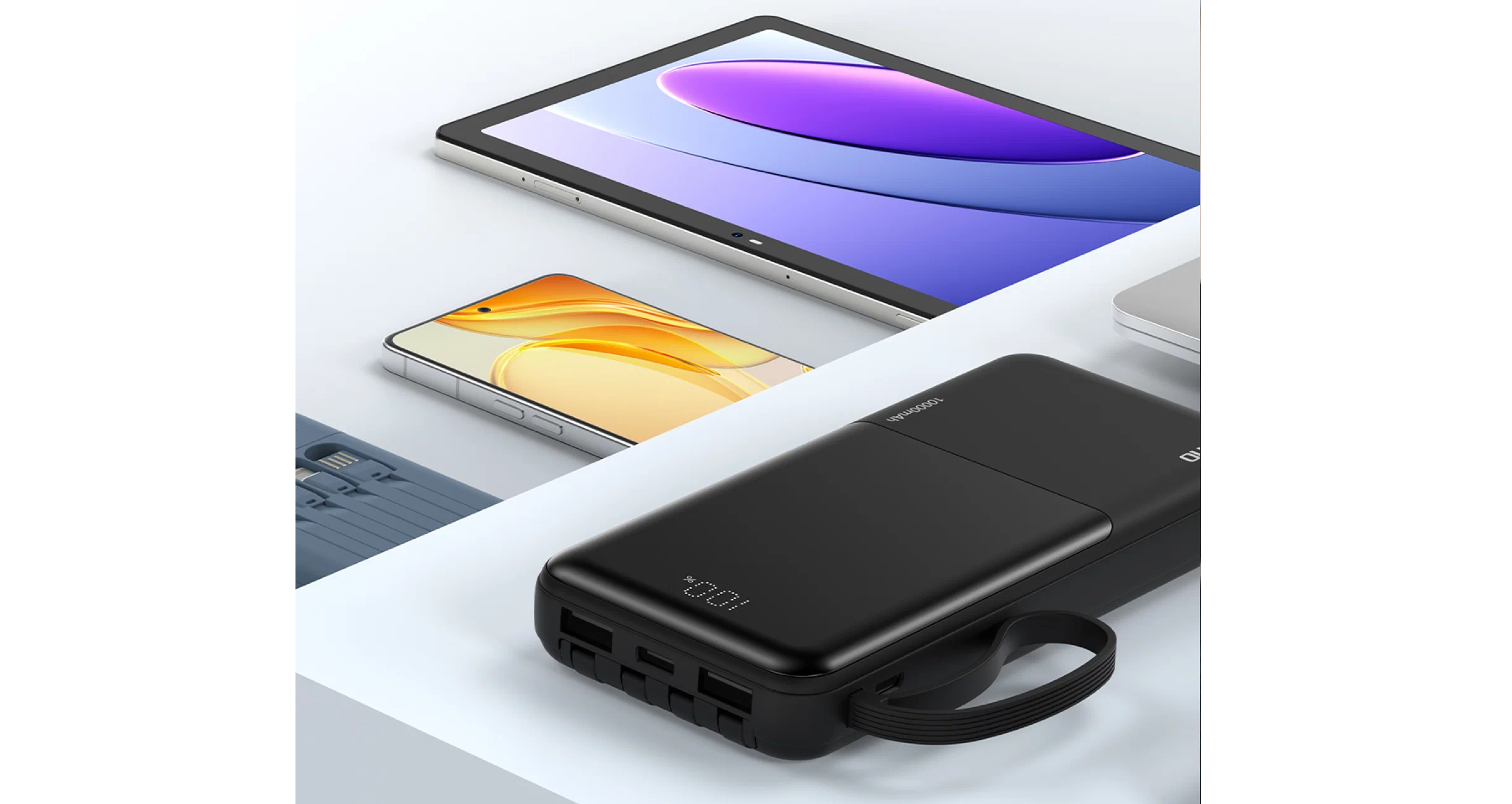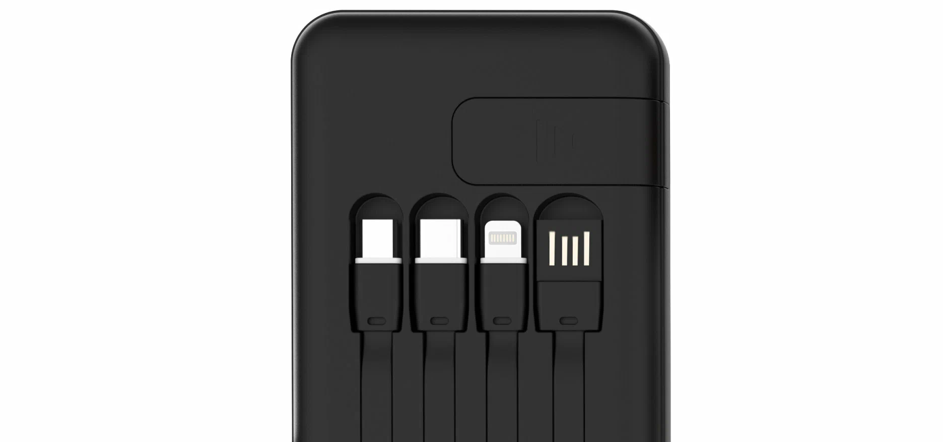 Tecno L101 предлагает высокий уровень универсальности благодаря наличию четырёх встроенных кабелей: USB Type-C, USB-A, Lightning и microUSB. Поддержка разных стандартов обеспечивает совместимость с широким спектром устройств — от современных смартфонов и наушников до аксессуаров с устаревшими разъёмами. Дополнительно на корпусе расположены входные порты Type-C и USB, что позволяет использовать разные кабели для восстановления заряда пауэрбанка.