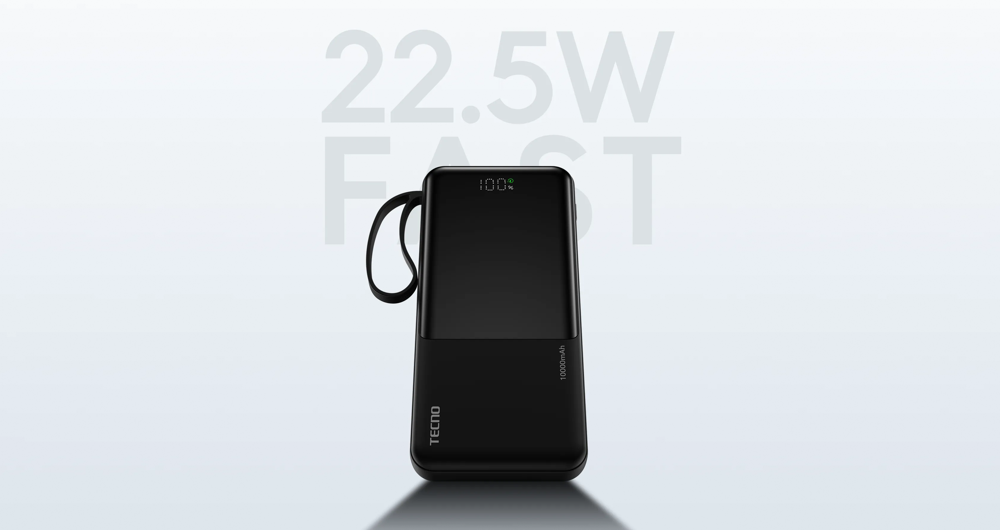 Tecno L101Q выполнен в лаконичном корпусе из прочного пластика. Устройство компактное — 14.6×6.75×2 см — и весит всего 236 граммов, поэтому легко помещается в сумку или карман рюкзака. Корпус не имеет рисунка и выглядит универсально, а встроенная подставка для смартфона делает использование пауэрбанка удобным в дороге или на рабочем столе.