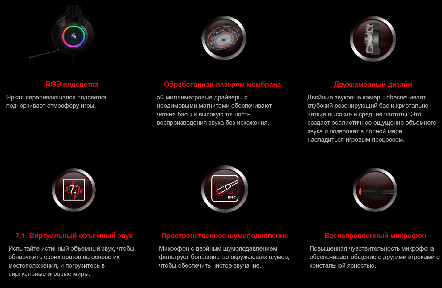Гарнитура Bloody изготовлена из высококачественных материалов, которые обеспечивают комфорт в течение долгих часов прослушивания. Bloody никогда не идет на компромисс с точки зрения качества и комфорта. А благодаря элегантному дизайну даже самые требовательные геймеры будут в восторге.