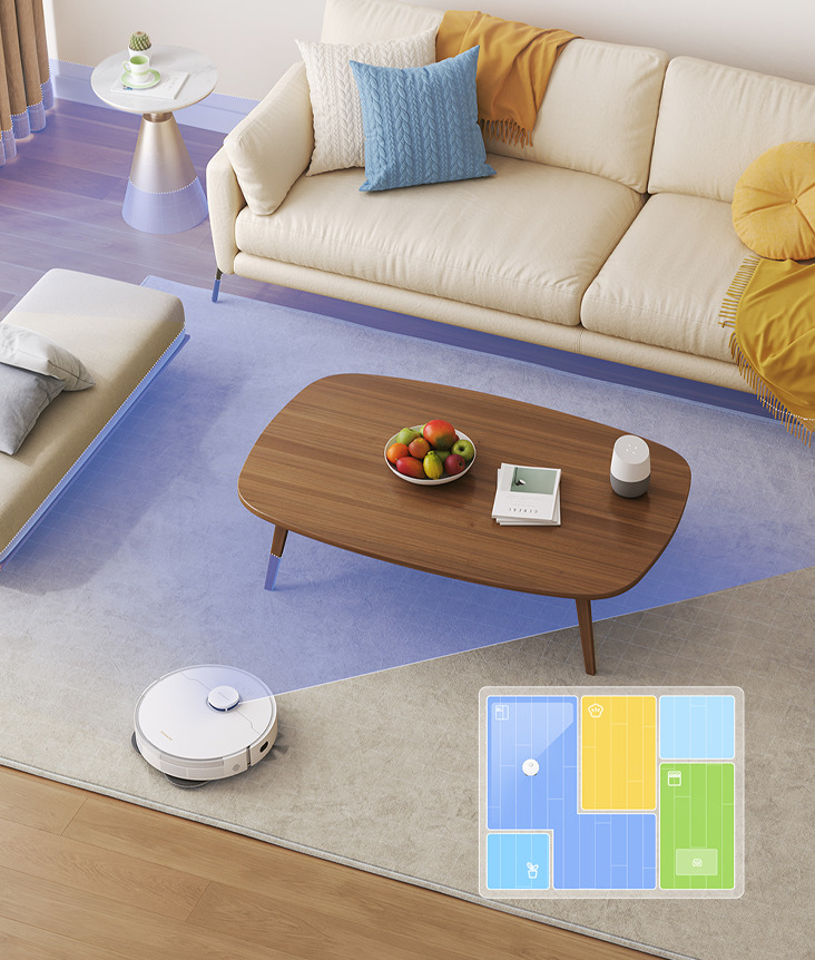 РОснащен технологиями 3D-сканирования объектов для обхода препятствий и построения точных карт помещений. Это позволяет роботу эффективно маневрировать вокруг предметов и препятствий. Карты помещений помогают оптимизировать маршруты уборки и обеспечивать полное покрытие всей убираемой площади.