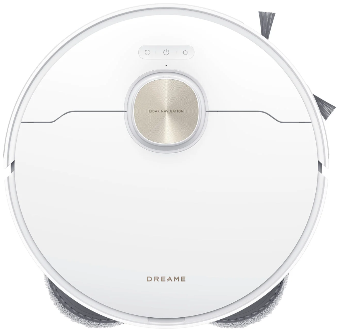 Dreame L50 Ultra сочетает мощную сухую и влажную уборку с интеллектуальной навигацией. Белый корпус с золотистыми акцентами подчеркивает премиальный стиль устройства.