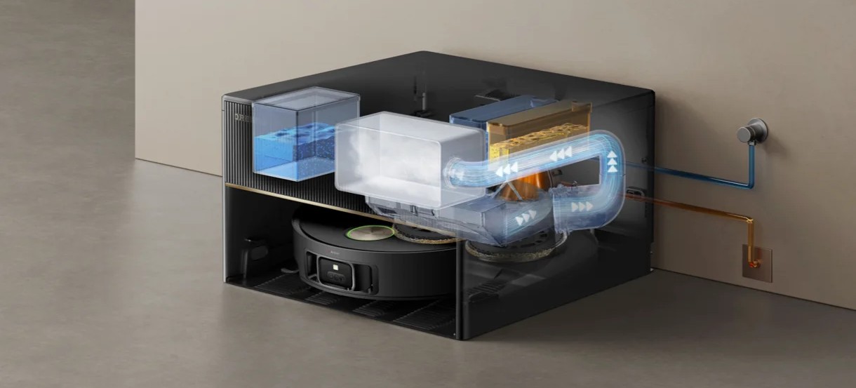 Система PowerDock позаботится обо всем: от автоматической заправки, слива и промывки до зарядки, благодаря чему вы сможете сосредоточиться на результатах, не беспокоясь об обслуживании. Наслаждайтесь интеллектуальной уборкой без хлопот. (Комплект для подключения к водопроводу приобретается отдельно)
