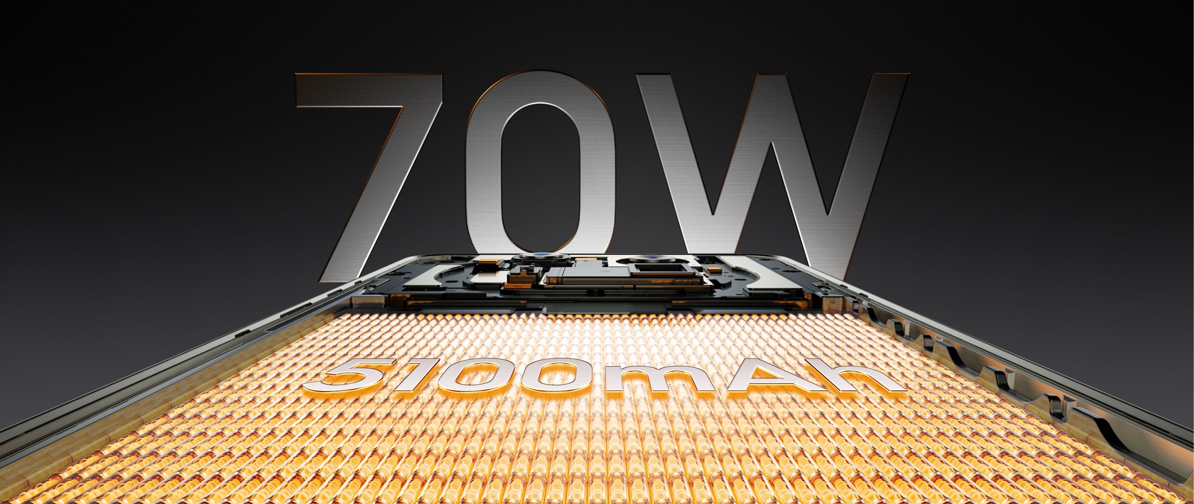 Большая ёмкость аккумулятора 5100 мАч поддерживает работу смартфона в течение всего дня, а быстро пополнить заряд устройства поможет комплектная ультра-зарядка 70 Вт.
