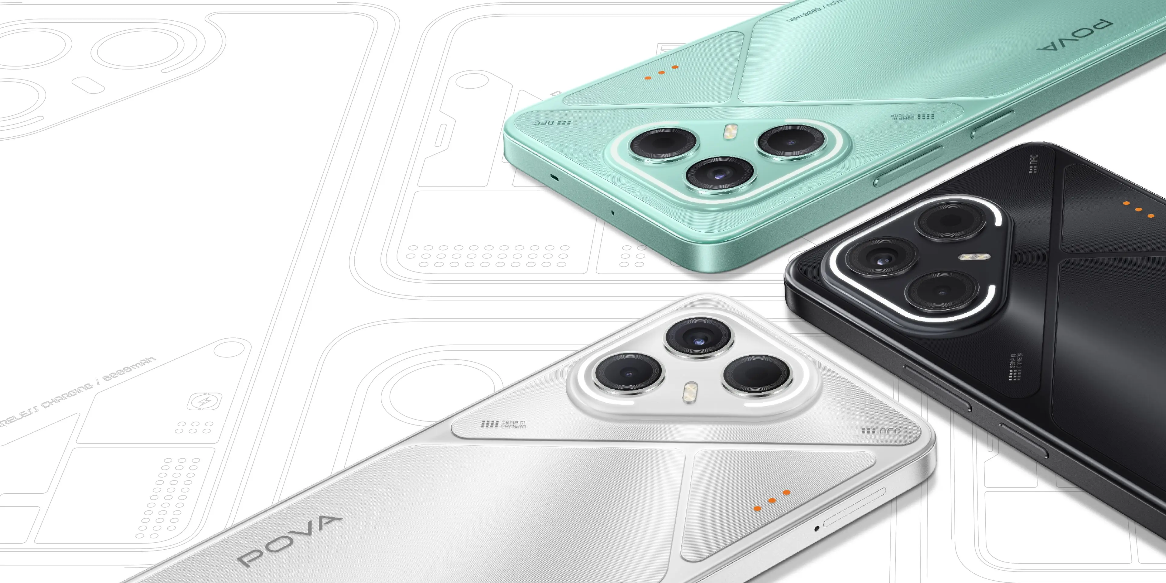 Tecno POVA 7 5G — смартфон, который сочетает в себе современный дизайн и продуманные игровые возможности. Он построен на базе процессора MediaTek Dimensity 7300 Ultimate (6 nm), снабжён 6,78-дюймовым IPS-экраном с разрешением Full HD+ и рекордной для своей категории частотой обновления 144 Гц. Смартфон доступен в трёх цветах: Geek Black, Magic Silver и Oasis Green. Задняя панель выделяется ободком из 104 светодиодов вокруг основного блока камер: он служит индикатором уведомлений и создаёт выразительный визуальный образ.