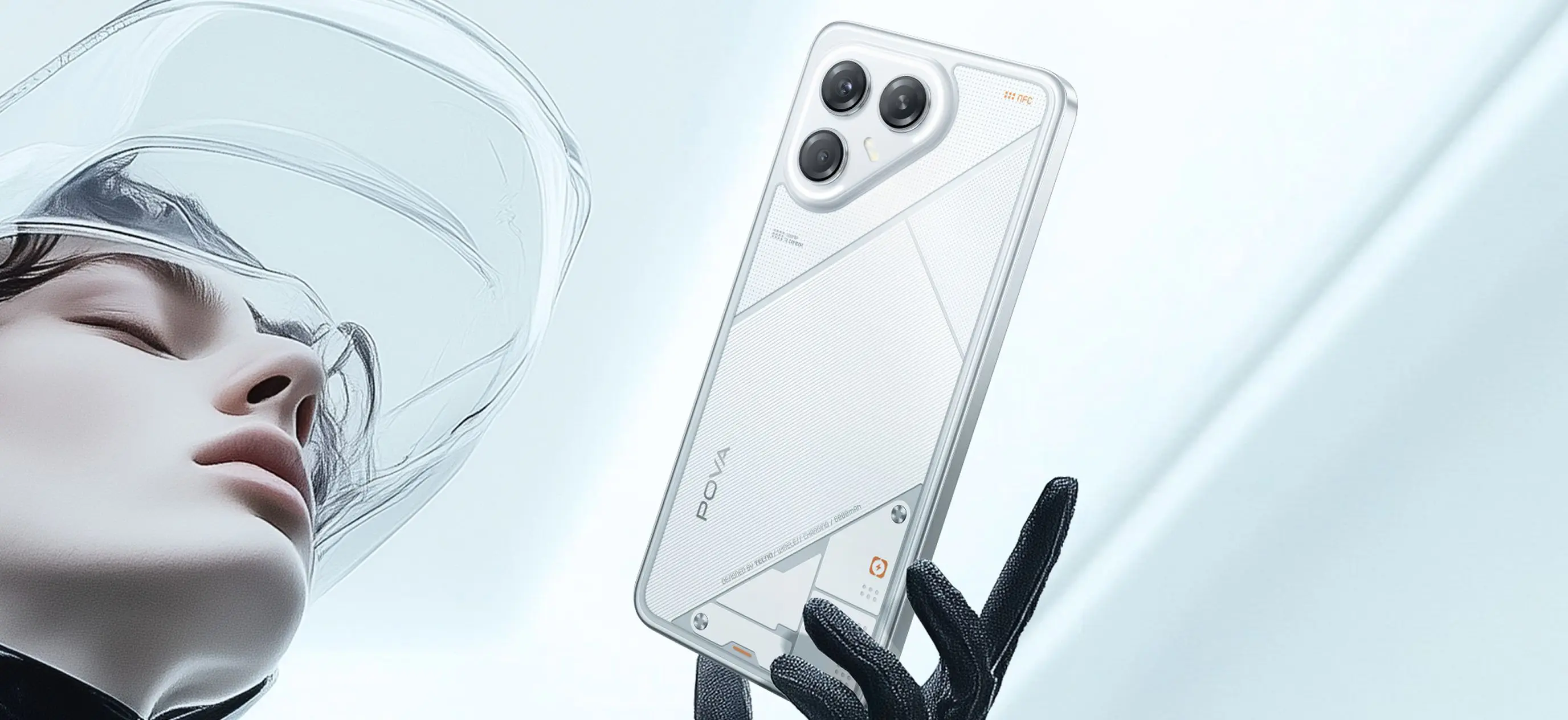 Tecno POVA 7 Ultra 5G создан для тех, кто ценит сочетание современного стиля и практичности. Смартфон получил классический корпус из прочного пластика с элегантной белой отделкой, которая придаёт устройству лёгкость и утончённость. Несмотря на ёмкий аккумулятор, толщина корпуса составляет всего 8,9 мм, а вес — 201 грамм, что делает аппарат удобным в повседневном использовании. Эргономика продумана так, чтобы смартфон уверенно лежал в руке даже при длительном пользовании.
